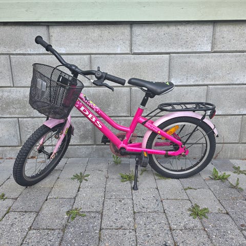 Merida barnesykkel 16" i rosa farge. Sykkelen har 16-tommers hjul som passer for mindre barn. Den er utstyrt med heldekkende kjedekasse, bagasjebrett bak, skjermer foran og bak, støtte og kurv foran. Sete og holker er lyse med blå detaljer. Reflekser på hjul og bak gir økt synlighet. Egnet som hverdagssykkel for barn som skal lære å sykle eller bruke sykkelen til korte turer.