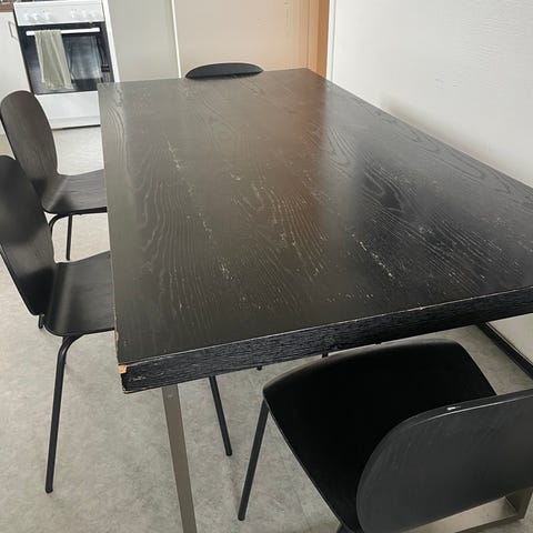 Gir bort godt brukt spisebord. Har en del riper og bruksmerker som er vist på bildet. 180x90cm høyde 76cm