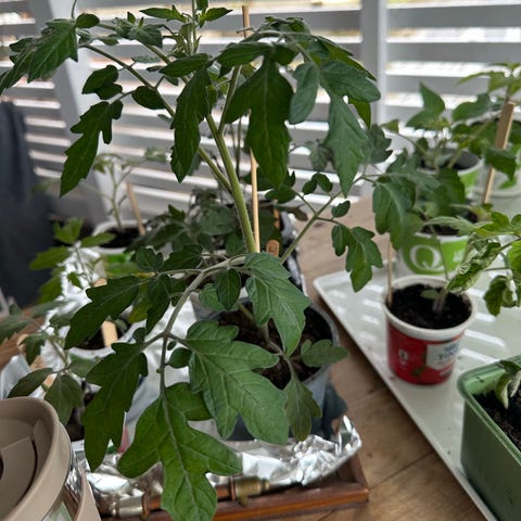 Gul potte/krukketomat. For tidlig avling kan den stå i et solrikt vindu. Best med ekstra plantelys.