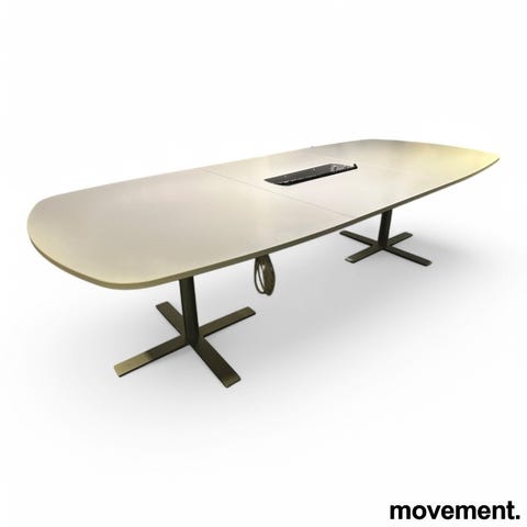 Duba-b8 Møtebord 420x113cm Hvit laminat, grått understell, Pent brukt