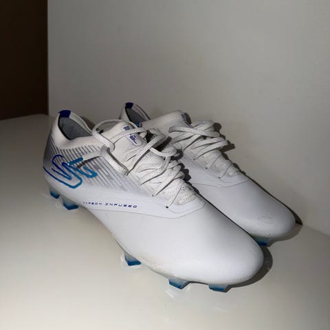 Disse fotballskoene er neste helt nye. Jeg kjøpte de i starten av Oktober 2025 og har brukt de Max 2 ganger. Det er gode sko, men de var ikke helt min type. De er i størrelse 42. Ved kjøpet får du også med posen som er til bildet som man får ved kjøp av elite sko.