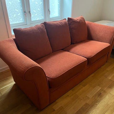 Lite brukt sovesofa. Fast madrasss, så anbefaler evt en overmadrass på toppen.