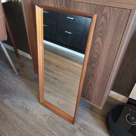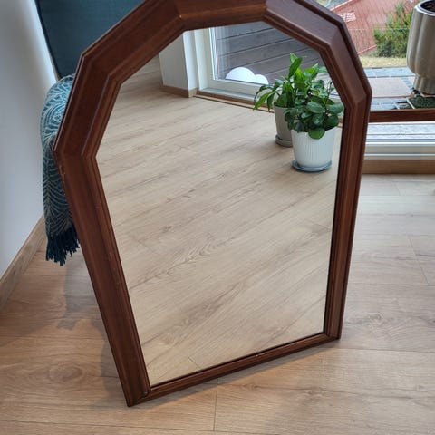 60 talls speil med Teak ramme 80-34. Selges til 800kr. Må hentes Skatval