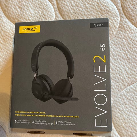 Selger et helt nytt og ubrukt Jabra Evolve2 65 headset med Link380c USB-C adapter. Microsoft Teams-sertifisert og perfekt til hjemmekontor og møter.