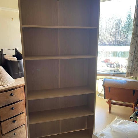 Mørk grå, med lett metallic finish(ikke glitter) Billy hylle som er 60cm bred. Ellers samme mål som andre Billy hyller.