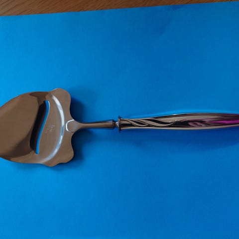 Gullforgylt kakespade i helsølv i mønster "Åre", designet av Birger Saastad i 1958 og solgt av J. Tostrup.