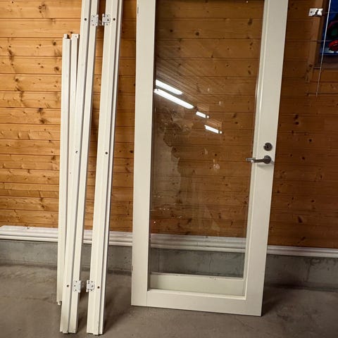 Ny rammeglassdør med klart 6 mm glass og karm 93 mm med spor for fastvegg.