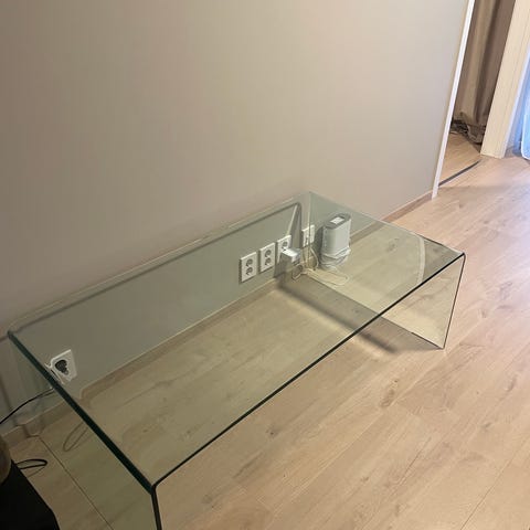 Glass salongbord selges pent bruk, ingen store synlige riper i det, veldig godt bevart