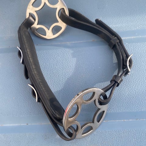 Hackamore med "ring" på siden. Ser ikke str på den, men passer både cob og full. 200 kr