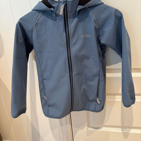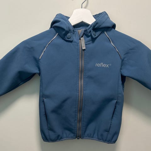 Reflex jakke for barn i størrelse 92. Jakken er blå og laget i polyester. Den har avtagbar hette, glidelåslukking foran og elastikk nederst på ermene. Innsiden har mykt fôr i polyesterfleece. Jakken er unisex og egner seg til hverdagsbruk og utendørs lek for små barn.