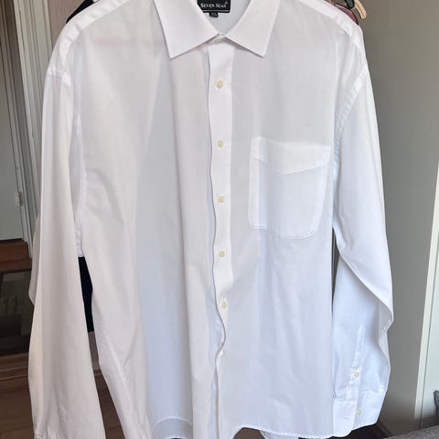 Seven Seas skjorte for herre i størrelse XXL. Skjorten er blå og laget av 100 % bomull. Den har klassisk krage, knappelukking foran og mansjetter med knapper. Modellen har brystlomme på venstre side. Passer til både hverdagsbruk og mer formelle anledninger der en enkel bomullsskjorte er ønsket.