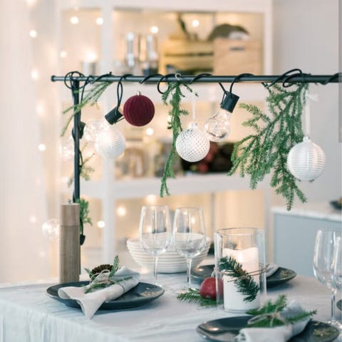 Matchende lys, telys, dekor og servietter.