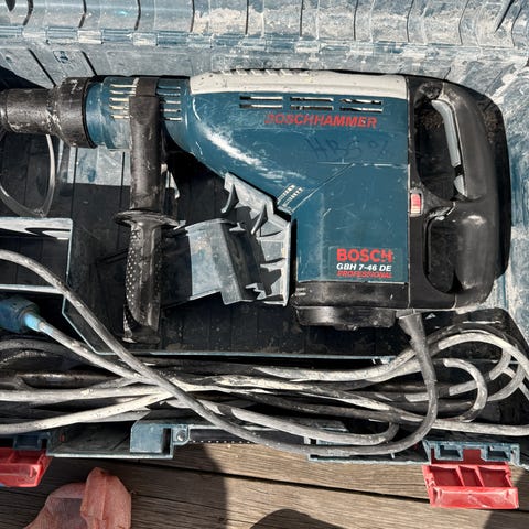 Makita HR2811FT borhammer med 800 W motor og 240 V driftsspenning. Verktøyet er beregnet for boring og meisling i betong, mur og andre harde materialer. Modellen har SDS-Plus-feste for bor og meisler, og er egnet til typiske bygge- og renoveringsoppgaver der det kreves slagboring eller meisling. Leveres med ledning og koffert, samt tilbehør som vist på bildene dersom dette følger med fra selger.