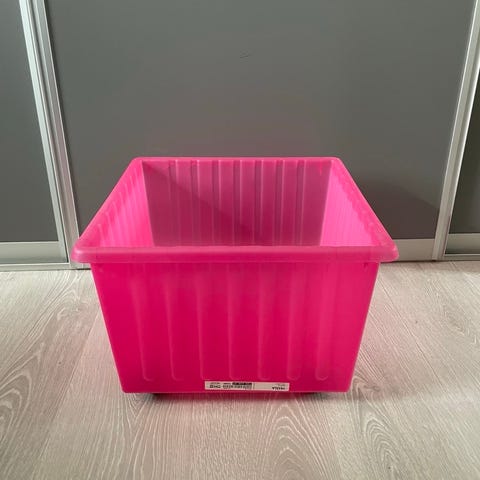 Vintage IKEA Märd oppbevaringskasse i rød høyglans plast. Memphis stil. Kassen har håndtak på sidene som gjør den enkel å løfte og flytte. Egner seg til oppbevaring av leker, barnebøker eller annet småutstyr på barnerom eller i andre rom. Passer til LP. Stabil konstruksjon i hard plast. Har hull til hjul, men de har jeg ikke. Stabelbar.