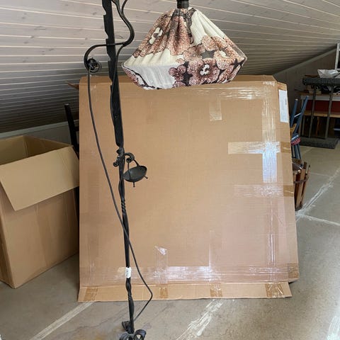 Eldre - mulig antikke smijern lampe med høyde justering må hentes på Grim Kristiansand snarest da lokalet skal tømmes