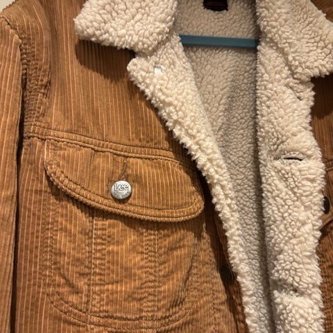 H&M jakke for menn i størrelse M. Jakken er brun og laget i kordfløyel. Innsiden har mykt, lyst teddyfôr som gir ekstra varme. Den har knappelukking foran, brystlomme med klaff og sidelommer. Egnet som ytterjakke i kjøligere vær / høstjakke.