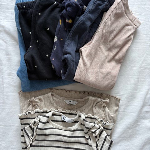- 11 bodys (1 omslag, 2 kortermet, resten langermet)