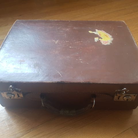 Vintage retro koffert / amerika-koffert i lær med tilhørende vintage barbersaker / barbersett