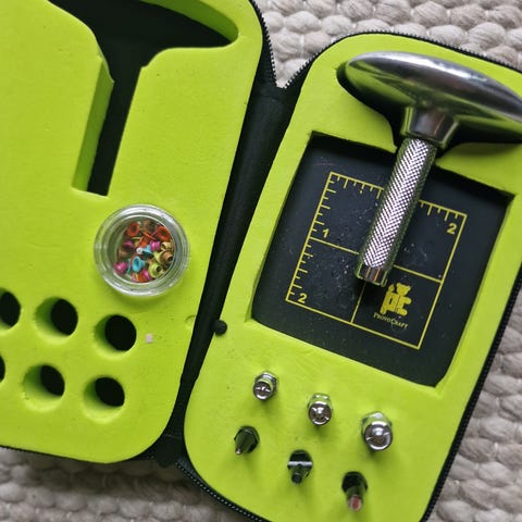 We R Memory Keepers Alphabet Punch Board verktøy for papirhobby. Brettet brukes til å stanse ut bokstaver i papir eller kartong ved hjelp av de integrerte punchene og linjalene. Egnet til scrapbooking, kortlaging, dekorasjoner og andre papirprosjekter der man ønsker bokstaver i ulike mønstre og farger.