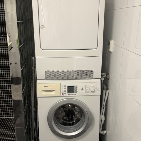 Dere bør være 2 personer ved henting. Kan være lurt med stropper/egnet metode for å få løftet trommelen ned fra vaskemaskinen.