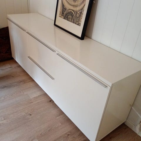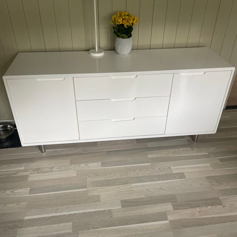 Pent skjenk i god stand. Kun to små riper i lakken. Det ene benet er løst, men ikke noe problem når skjenken hviler på det.