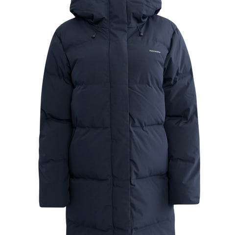Loen Down Jacket fra Holzweiler. En lenger modell av bestselgeren Besseggen. Chunky, deilig dunjakke i mørkeblå farge. God og kraftig krage, avtagbar hette med snøring og lommer i sidene. På innsiden har den også en liten lomme. Fasongen er rett og avslappet. Lukkes med glidelås og borrelås i front. Vannavstøtende og har en vannsøyle på 10. 000. En sikker favoritt til høst og vinter!