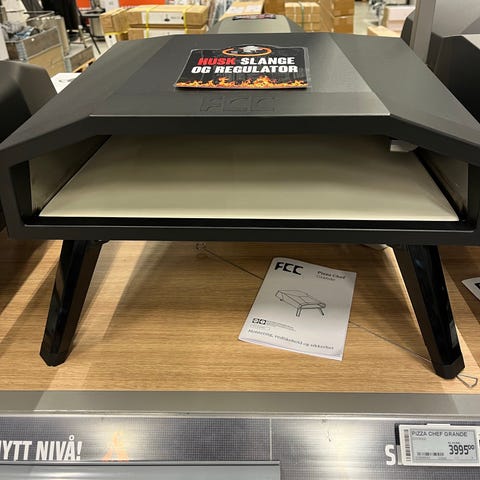 Pakken inneholder pizzovn, pizzastein, gasslange med regulator og metallspade for håndtering av pizza. Egner seg til steking av pizza og annen mat som krever høy og jevn varme utendørs.