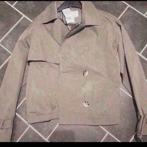 Lang Tara vår/høst jakke str M i kakigrønn. Snøring i livet