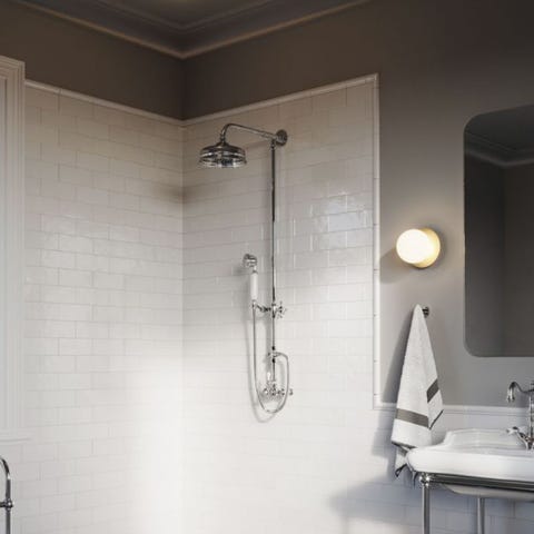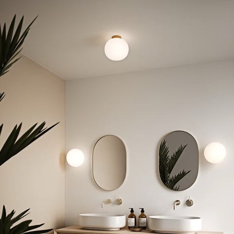 Berend er en elegant vegglampe med nydelige messingdetaljer og med glasskuppel. Lampen er godkjent for bruk på baderommet.