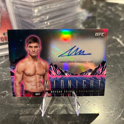 Panini UFC Origins samlekort med autograf. Kortet viser en UFC-utøver i bantamvekt og har signatur på forsiden. Baksiden inneholder spillerinformasjon, kortnummer og UFC- og Panini-logo. Egnet for samlere av sports- og UFC-kort.