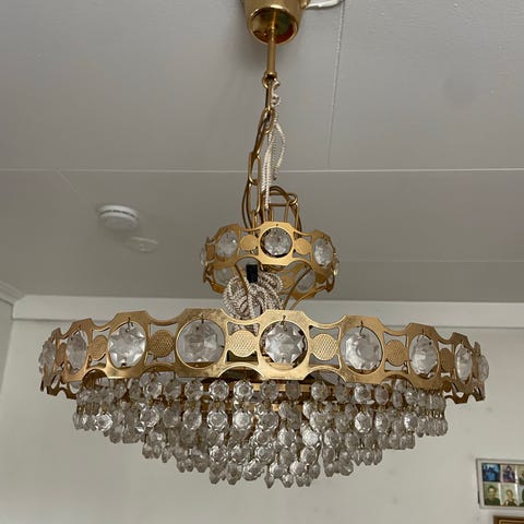Selger en flott og dekorativ krystall-lysekrone i Forgylt messing. ✨️