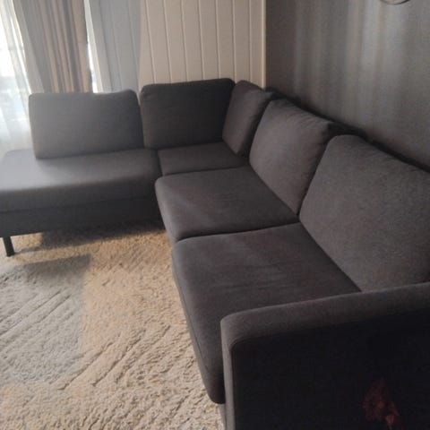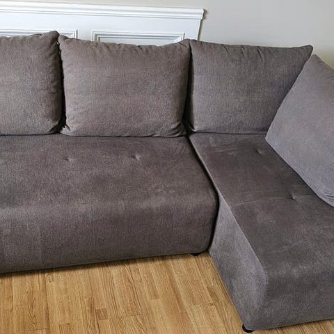 Fin hjørnesofa/sovesofa med oppbevaringsplass