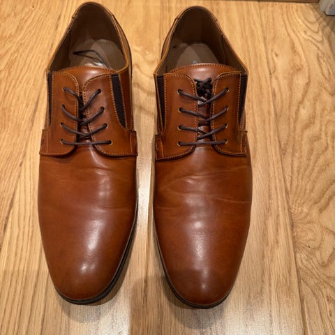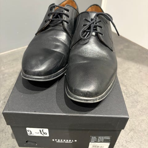 Stockholm Design Group pensko i størrelse 41. Skoene er brune snøresko med glatt overlær og gummisåle med mønster for bedre grep. Innleggssålen er polstret med blå detalj på innsiden. Klassisk modell som passer til bruk ved formelle anledninger og til penere hverdagsantrekk.