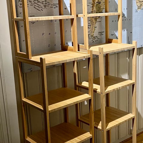 De seks hylleplatene kan enkelt flyttes opp eller ned, etter behov