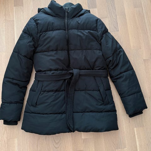Hm sort varm og god vinterjakke str 38, medium. Glidelås og knapper over.