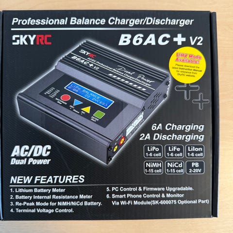 Laderen har en meget lyssterk skjerm på 2.4" som viser lade- og batteristatus samt tid til ferdig ladet, innstillinger navigeres ved bruk av bryterpanel. Batterier med IC3/EC3 eller IC5/EC5-kontakt kan plugges direkte inn i laderen, andre kontakter må benytte en overgang, balanseringskontakten (XH) kan kobles direkte inn.