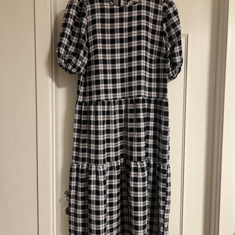 Brukt en gang som nød kjole i fjor sommer . Lett og deilig til sommer, selges pga flytting. Trenger en runde med styrkejern eller steamer!