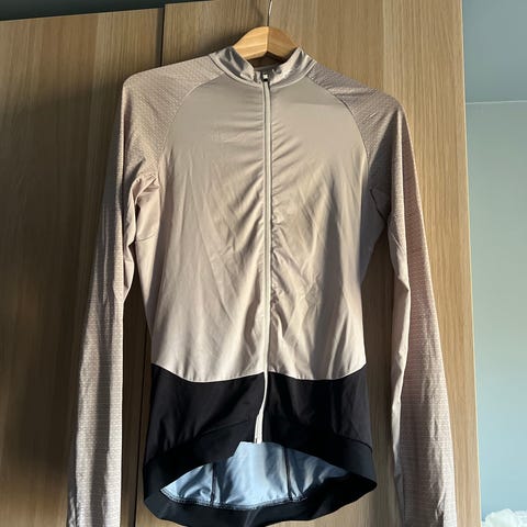 POC sykkeltrøye med korte ermer i størrelse Small. Trøyen er tofarget i hvit og rustfarget felt nederst. Hel glidelås i front og POC-logo langs glidelåsen. Baksiden har elastisk kant og flere lommer, inkludert en lomme med glidelås. Superlett og pustende stoff med strukturert mønster, egnet til sykling på landevei eller terreng i varmere vær.