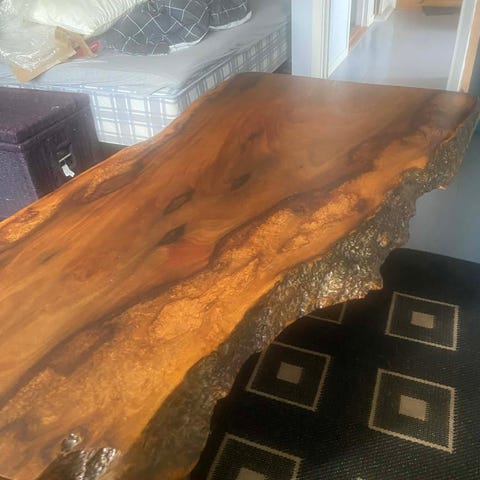 Selger et helt unikt langbord laget av heltre lerk. Bordplaten er laget av ett stykke trestamme som er helt rett – noe som er svært sjeldent å finne. Dette gir bordet et spesielt og eksklusivt uttrykk som skiller seg ut fra vanlige trebord.