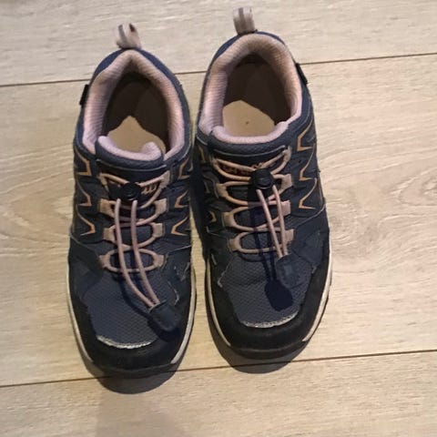 Zero 0°c Storo GTX Jr overgangssko i størrelse 34. Skoene er grønn farge med mellomhøyt skaft og snøring. Egnet for vår/sommer/høst i våtere vær. Mangler innersåler.