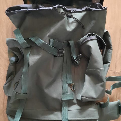 Tursekk i grønn farge med klaffelokk og remmer for lukking. Sekken har flere festepunkter og stropper som kan brukes til å feste utstyr. Egnet til tur og friluftsliv.