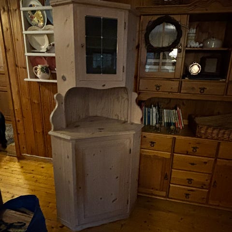 Eldre hjørneskap selges. Usikker alder. Over 50 år