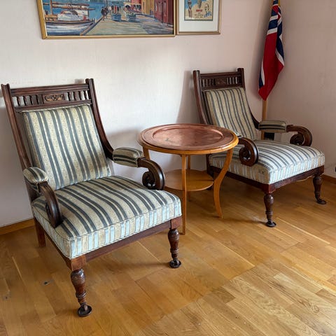 Sittehøyde på stolene er ca 45cm. Åpen for seriøse bud. Må hentes på Kaldnes på Nøtterøy.