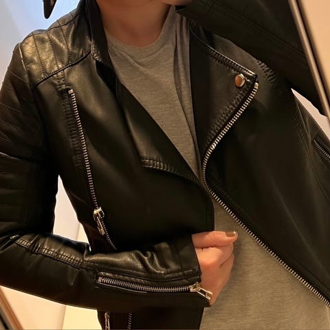 Kjøpte denne skinnjakka på Camden Market for 1200, den er 100% ekte skinn. Var desverre ikke helt for meg og fikk aldri brukt den, den er i svært god tilstand og fremstår som ny. Størrelse L men vil si at den er mer tilsvarende S eller M.