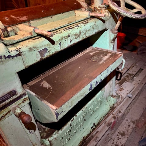 Stor og solid høvel. Står igjen etter forrige eier. Har tilgang på hjullaster for å få den på henger.