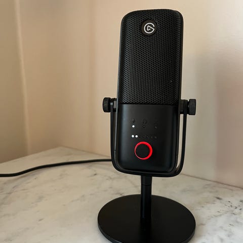 Mikrofon med bordstativ hvit