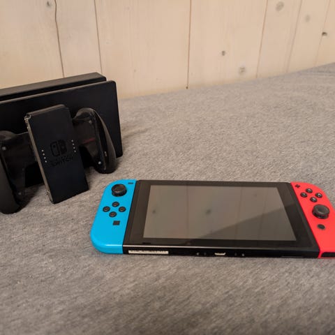 Nintendo Switch spillkonsoll med Joy-Con kontroller og dokkingstasjon