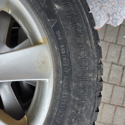 Gode vinterhjul fra min gamle avensis. Med på kjøpet får du også noen ikke fult så gode sommerhjul. De 4 vinterhjulene holder luften godt. To av sommerhjulene lekker men jeg vet ikke hvor. Det er to typer, og det er selvfølgelig et av hver som lekker. Litt usikker på boltsirkel og diameter på midtre hjul, men det var tallene jeg fant på internettet.