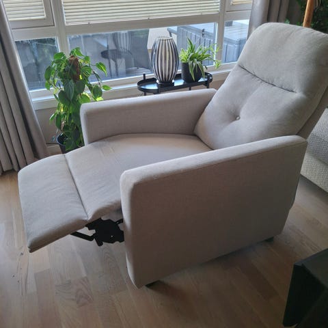 Lenestol med fotskammel til salgs