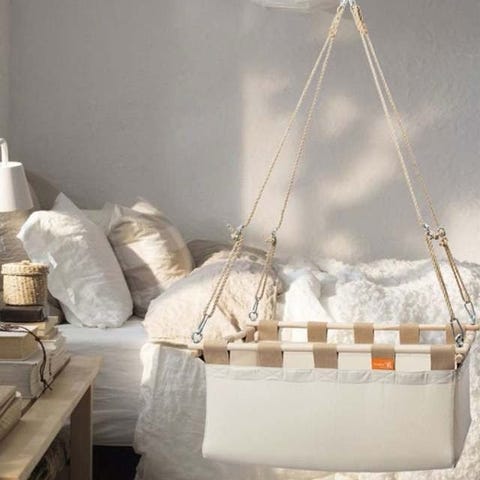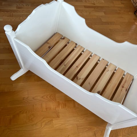 Nydelig og naturlig hengevugge til baby i pen makramé. Pent brukt.